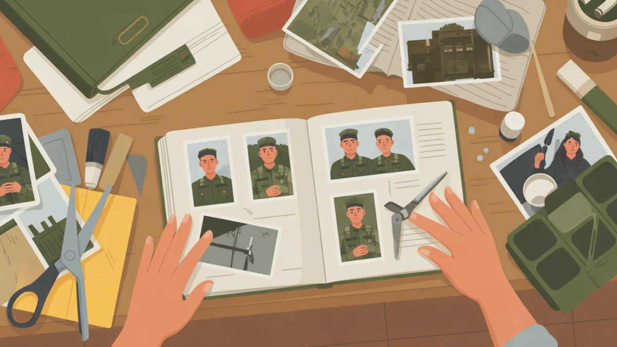 Совет бывалого: начинайте собирать материалы для альбома с первых дней службы. Фотографируйте все интересные моменты, сохраняйте билеты, записки, даже обертки от армейских конфет — все это потом станет ценными артефактами.